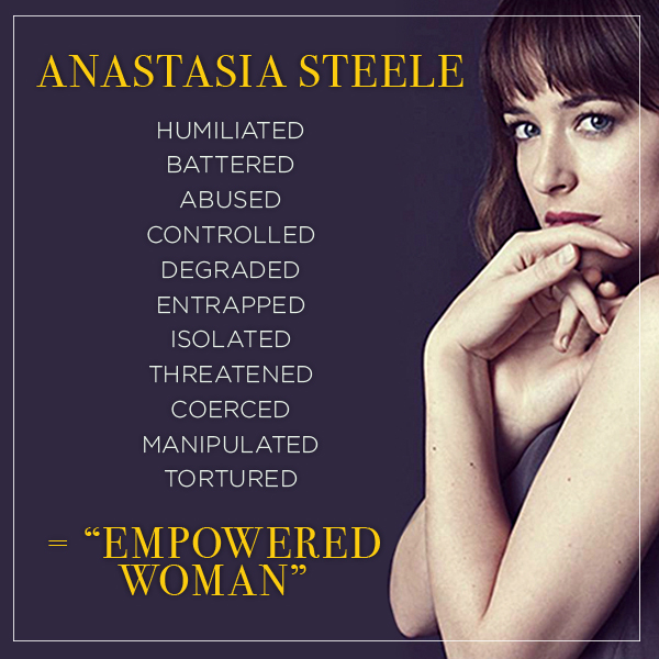When we critically inspect the true personal and relational qualities of Anastasia we find a desperate, confused, love-starved, shamed victim. Her actions are not empowering, freeing or independent. Her relationship with Christian does not bring a new level of self-reliance or even sexual aptitude. What she gains from her relationship is baggage, scars and a devalued sense of self-worth. In reality, her experience would be called sexual and physical abuse; and outside of theaters we would encourage anyone to escape from such a tormented relationship. It is so disappointing to see how a false sense of freedom is what has been promoted by these books, instead of lamenting the fact that a human being is duped into finding her self-worth in sex and an abusive relationship.