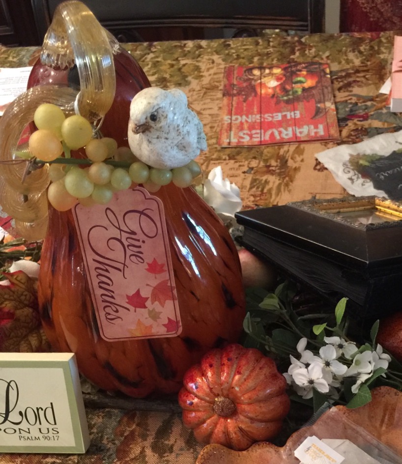 Your Thanksgiving décor should begin at the front door where guests arrive. The front door area and the foyer should prepare the heart of your guests for what’s to come. As they enter your home, always greet them with a smile and heart of love. This is where the servant heart fills the air and begins to bless the ones the Lord has invited to your home. Always begin by offering them refreshments and maybe some hor d’oeuvres. A gracious host will consider the people who are coming and begin to think about the opening conversation they might have that would be uplifting and edifying and will set the tone for a lovely time.