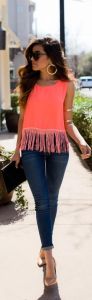 Excuse the terrible play on words, obviously my naming tactics need a little work but you get the idea! Fringe is another way to spice up your wardrobe this spring. It can be a few tassels on your favorite blouse, that adorable 70’s inspired bag you picked up at the mall, and if you’re feeling a little extra funky try out some fringed jeans. Whether you’re going for that flower power feel or you just want a little extra flare, binging on some fringe basics is never a bad idea.