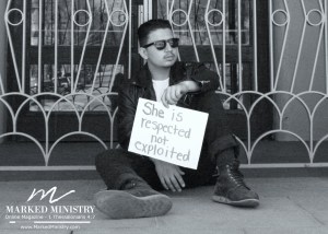 Here at Marked Ministry, we want to honor women like Jesus did and continues to do by reflecting on His words to women. It was important for us to deliver them to you by a guy who loves God. Our model, Harley, loved the message and was excited to be apart of our issue sharing this message. Each statement was prayed about and given consideration as we desired to create statements that reflected the heart of Jesus. In the process, we thought it would be fun to come up with a concept that captured some of the personality and style of our model, giving a retro black and white feel. Inspired by his wardrobe, we coupled classic with cool because we believe godly guys have style! But, we also believe the true definition of “cool” comes from Jesus, who wasn’t afraid to stand up for women and show them honor. We pray Harley isn’t the first or the last in this movement. May you be inspired to do the same.
