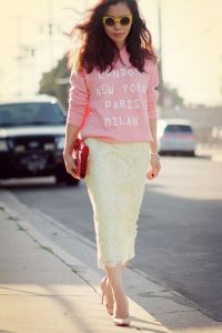 Next up, it’s oh la la lace! Think white lace Victorian style blouses tucked into your favourite pair of jeans or leather pencil skirt. Lace embroidered t-shirts teamed with smart culottes and white trainers screams effortless chic. Pretty pastel pencil skirts look fabulous with a fitted sweater and low heels. Special occasion coming up? Go all out a la Duchess of Cambridge and opt for a stunning and elegant lace dress. Who said lace was just for your Grandma’s tablecloth?