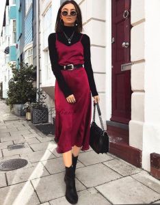 And who said satin was just for your pj’s?! Wear this beautiful material in the form of smart silky shirts with your office wide leg trousers or add some wow by wearing them with your tired jeans. Slinky midi skirts with chunky knitwear and lace up boots look super cute. My personal favourite way to wear smooth satin is a slip dress over a casual t-shirt or fitted jumper teamed with ankle boots! Woah, looking good girl!